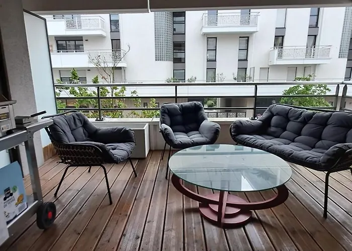 63 m^2 Spacious Apartment Near The Sea features views of the city and is situated a mere 0.7 km from Musee Aeronautique de la Presqu'ile Cote d'Amour. Wi-Fi and parking are provided for guests' business or leisure needs.